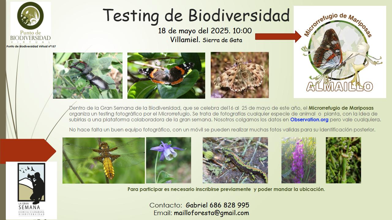 Testing de Biodiversidad en Microrrefugio de Mariposas Almaillo. Inscripciones Tlf 686 928995 (Gabriel). Email: mailloforestal@gmail.com